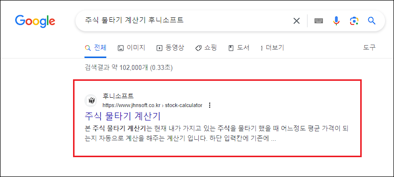 먼저 구글에서 [주식 물타기 계산기 후니소프트]를 검색하셔서 후니소프트 사이트로 접속하거나 아래 링크를 클릭해서 접속해 주시길 바랍니다.