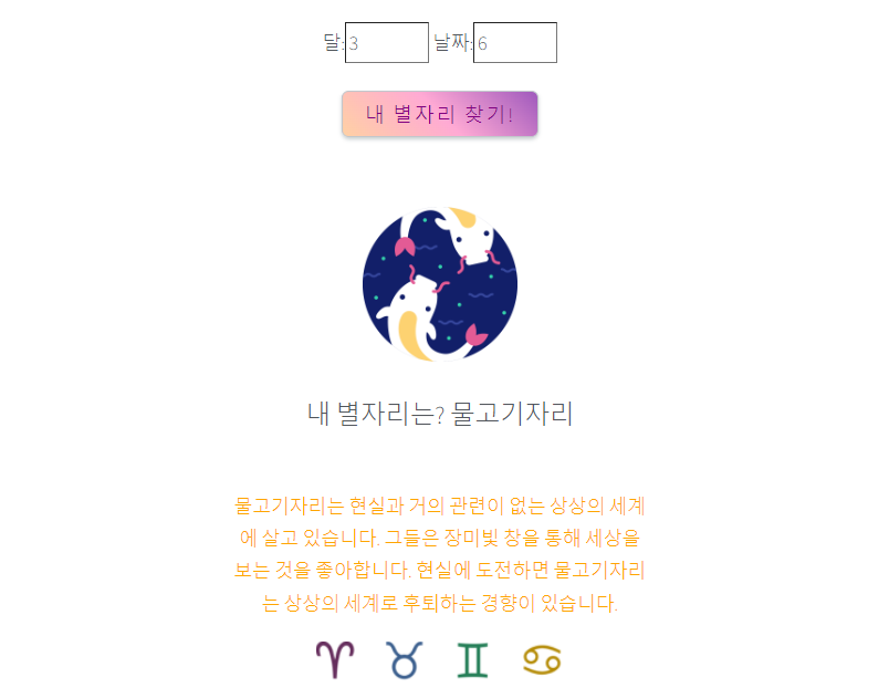저는 3월 6일을 입력했는데요. 생일을 입력했다면 중간에 내 별자리 찾기 버튼을 눌러 주시길 바랍니다.