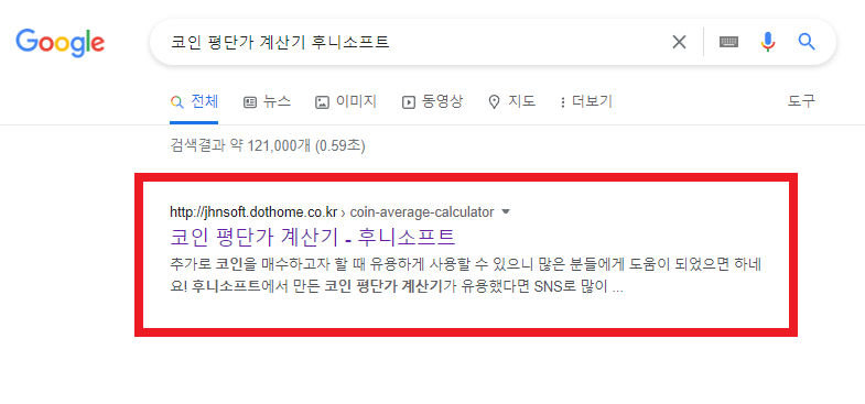먼저 코인 평단가 계산기를 이용하기 위해서 구글이나 검색사이트에서 [코인 평단가 계산기 후니소프트]라고 검색을 해보시길 바랍니다. 그러면 위와 같이 후니소프트에서 만든 코인 평단가 계산기가 나타나게 됩니다. 해당 사이트로 접속을 해주시길 바랍니다.